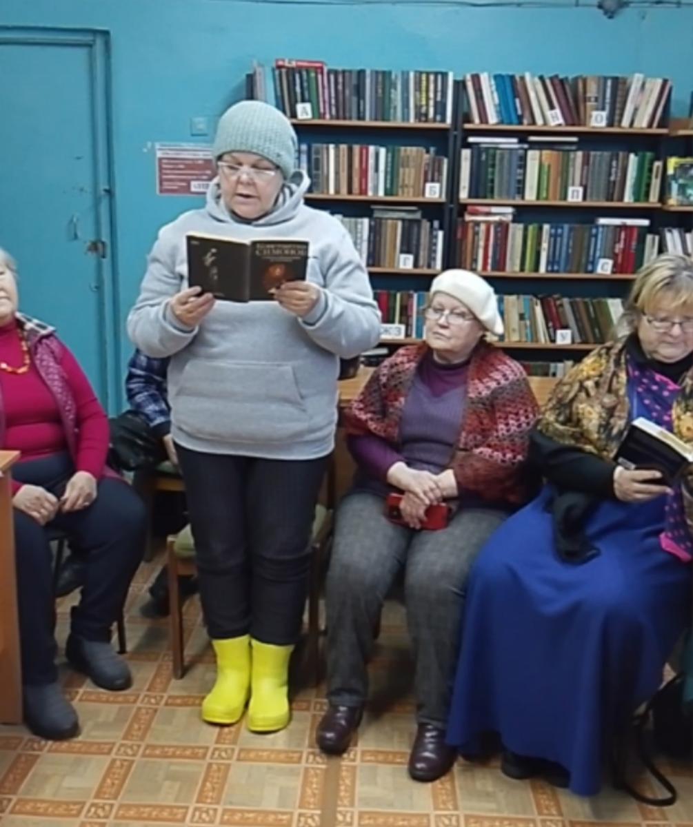 Библиотекарь рассказала о жизненном пути писателя, ставшего "певцом" Великой Отечественной войны. Затем участники мероприятия читали стихи Симонова "Если дорог тебе твой дом", " Жди меня и я вернусь", " Ты помнишь, Алёша, дороги Смоленщины" и другие произведения.