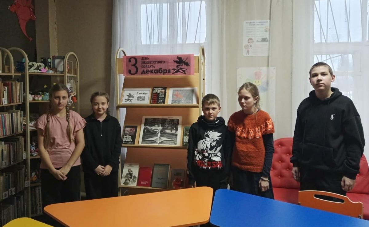 Ребята познакомились с историей мемориалов Неизвестному Солдату, воздвигнутых в разных уголках России и за рубежом. Прослушали проникновенные стихи Виктора Бокова и Эдуарда Асадова, посвященные этой скорбной дате. Дополнила мероприятие тематическая книжная выставка.