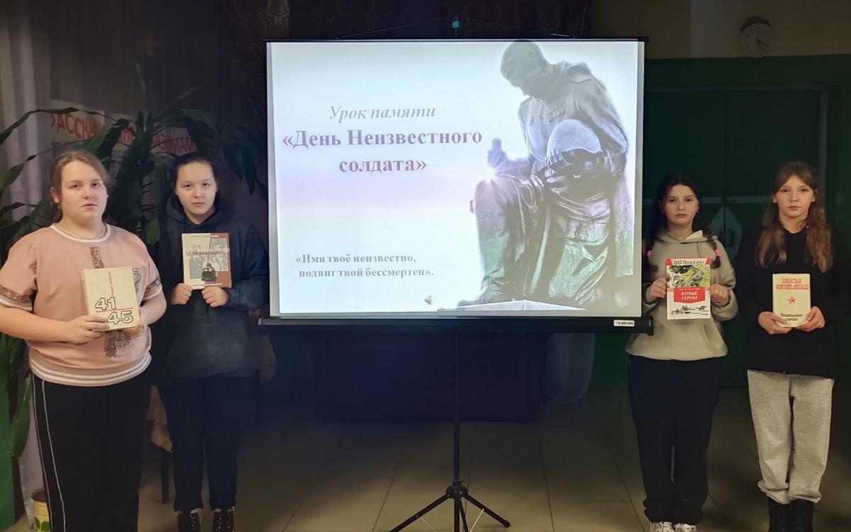 В д. Райково прошел урок памяти "О тех, кто не вернулся", посвященный Дню Неизвестного солдата. С ребятами поговорили об этой памятной дате – она , как дань уважения бессмертному подвигу оставшихся безымянными павших защитников Отечества, кто погиб на фронтах, это увековеченная память о каждом солдате, защищавшем Родину, и на чьи могилы не могут прийти их родственники и потомки.