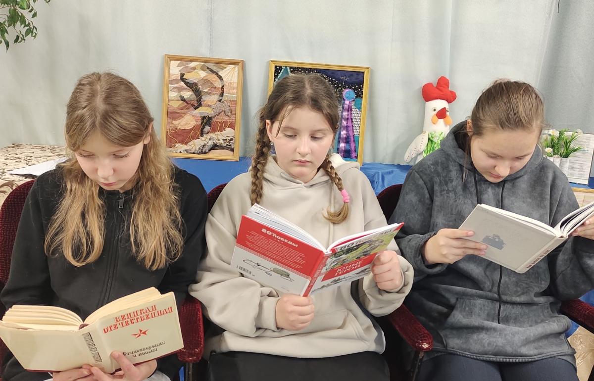 Библиотекарь провел обзор книг о великих сражениях, стихами и прозой военных лет, затем почтили минутой молчания неизвестных павших воинов.