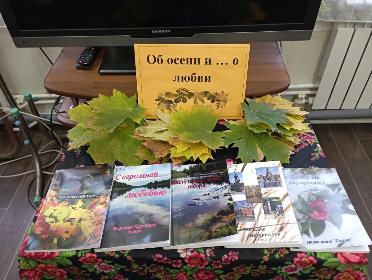 Программа вечера была наполнена искренними эмоциями и приятными моментами. Гости погрузились в мир поэзии, слушая проникновенные стихи тверских авторов об осени, любви и родном крае. Эти произведения были представлены на тематической выставке «Об осени и... о любви».