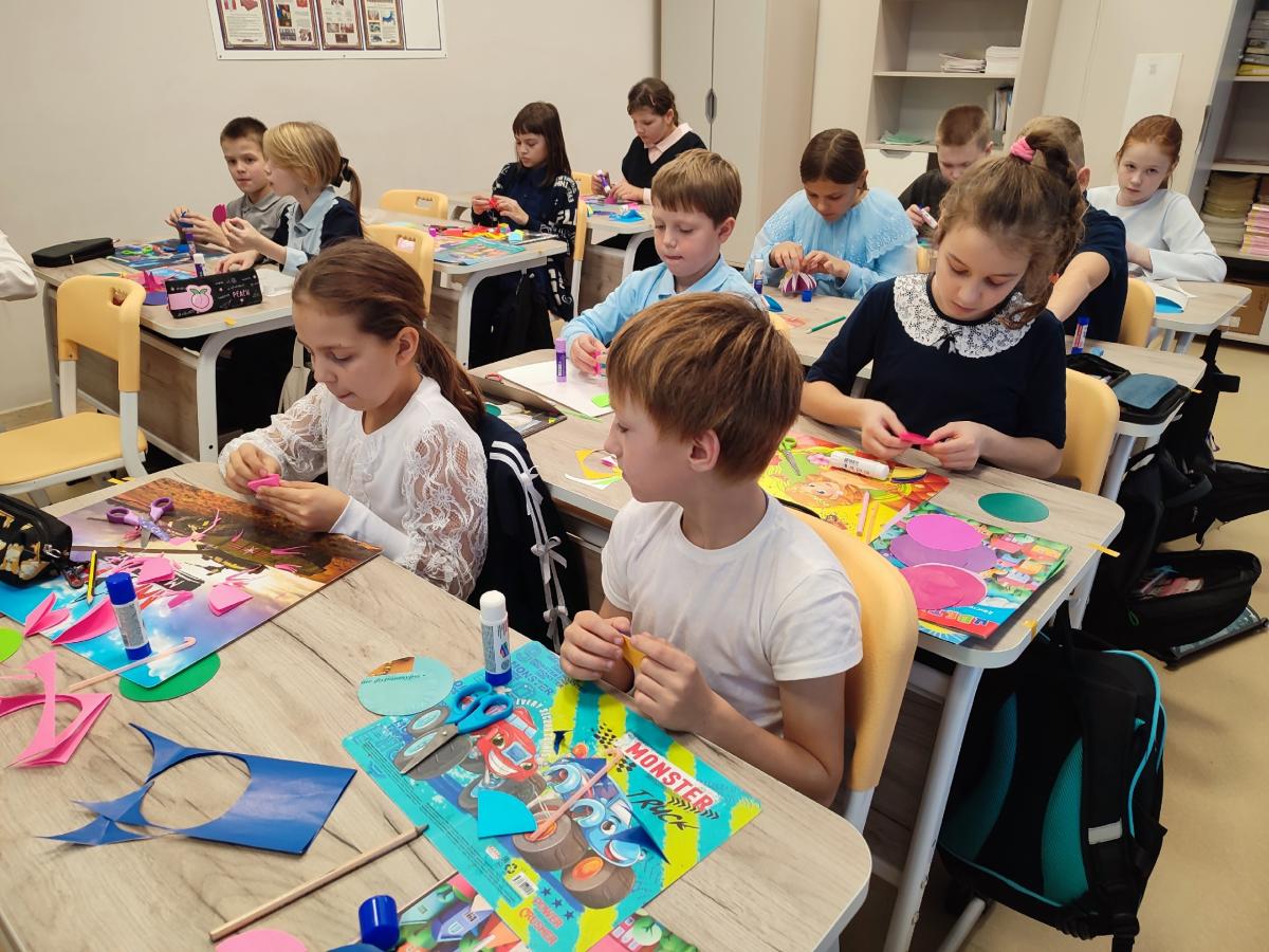 Затем приступили к мастер-классу, в ходе которого ребята сами сделали разноцветные поделки из бумаги.