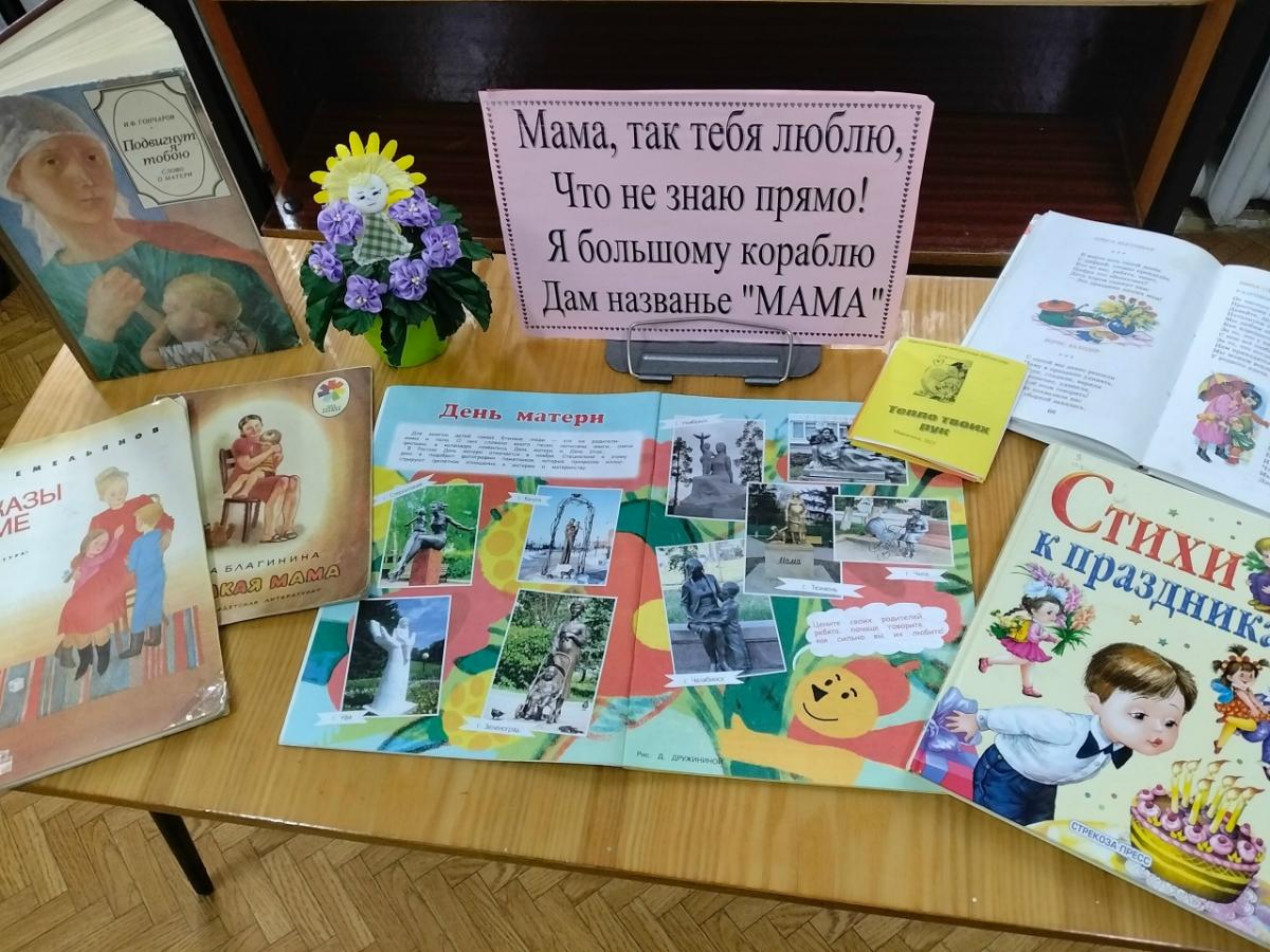 А еще вы сможете познакомиться здесь с интересной книжной выставкой «Мама – главное слово!»