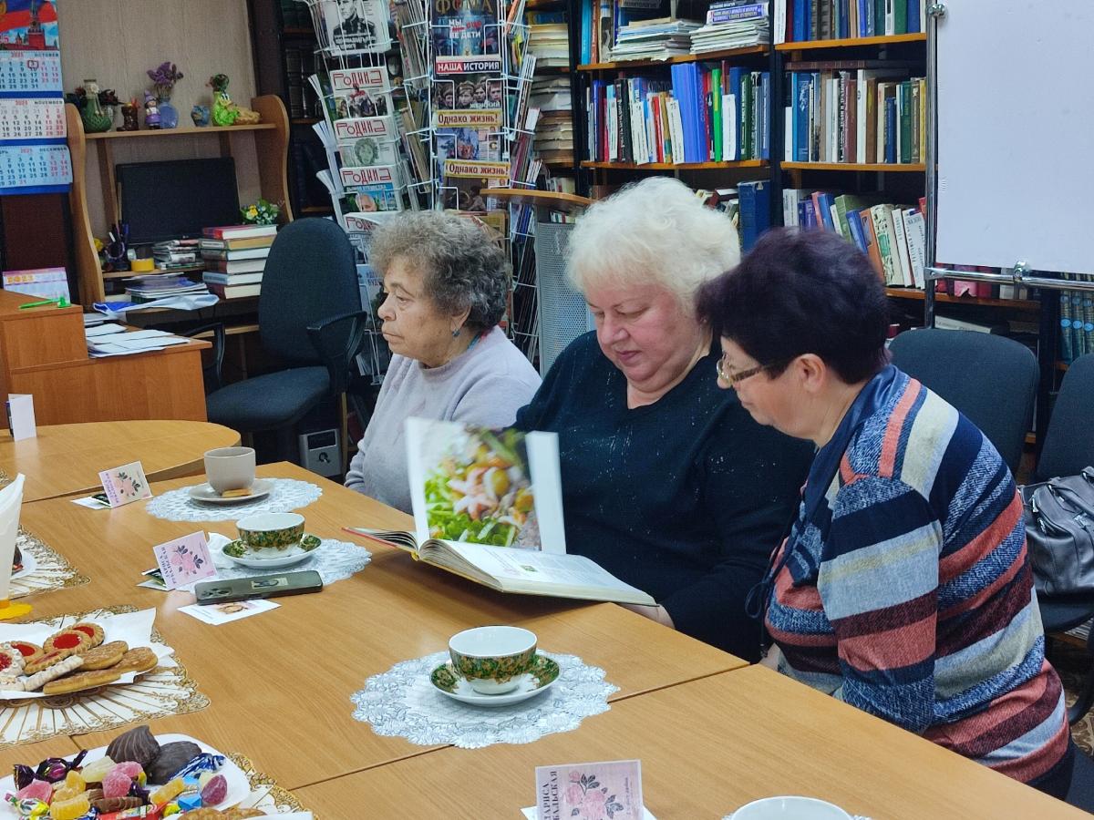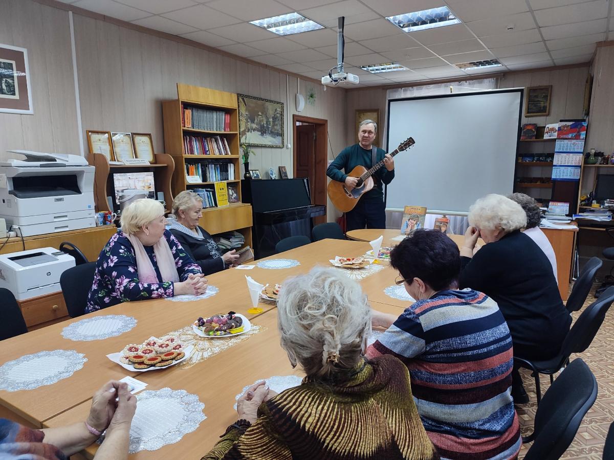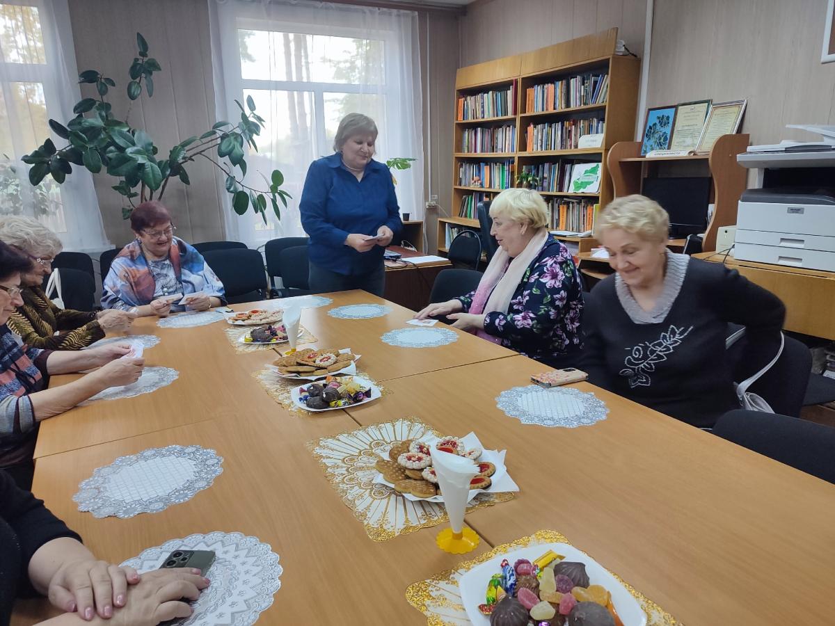 Перед началом мероприятия к участникам общественной организации ветеранов войны, труда Вооруженных Сил и правоохранительных органов с приветственным адресом обратилась директор библиотеки Русакова В.А. Она поздравила присутствующих с прошедшим праздником золотого возраста и пожелала им хорошо провести время в нашей гостиной.