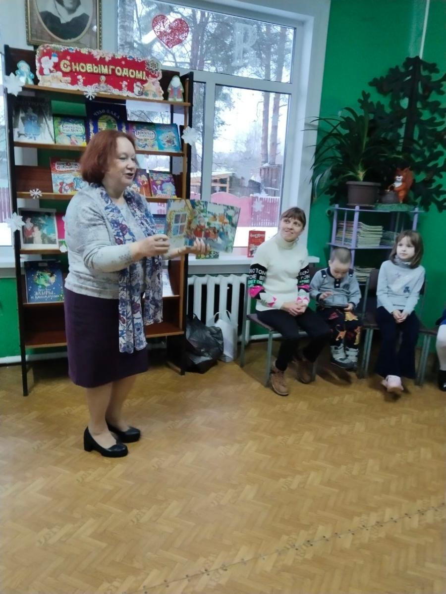 Любимая героиня праздничных мероприятий Библио-Ёжка вместе с библиотекарем устроили для ребят и их родителей настоящее Новогоднее представление с играми, песнями, загадками и стихами. Появление Деда Мороза с подарками вызвало настоящий восторг у детей.