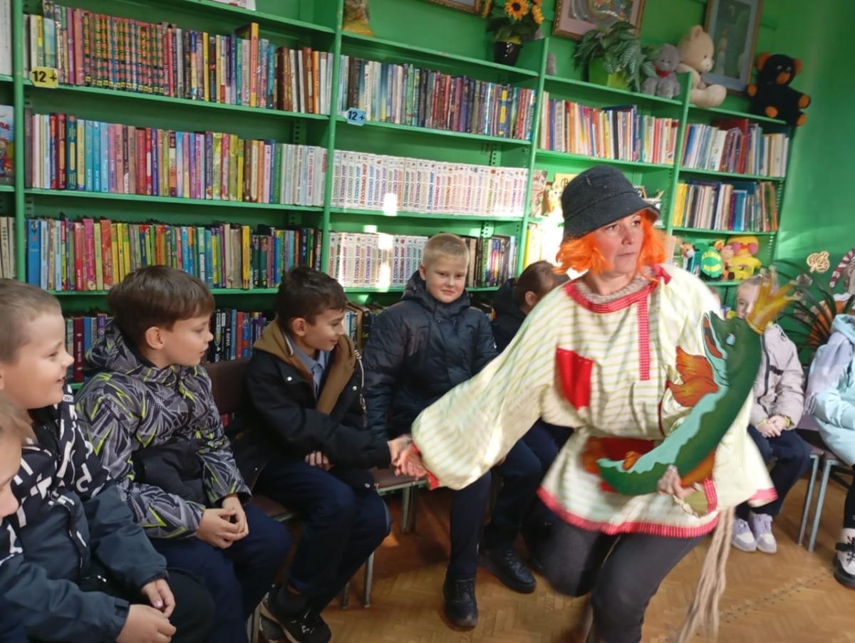 В детской библиотеке прошел утренник, посвященный русскому фольклору. Ученики 2 «А» класса средней школы №1 с учителем Мягковой Е.А. с большим интересом разгадывали загадки, отвечали на вопросы викторины по русским народным сказкам вместе со сказочным персонажем Емелей.